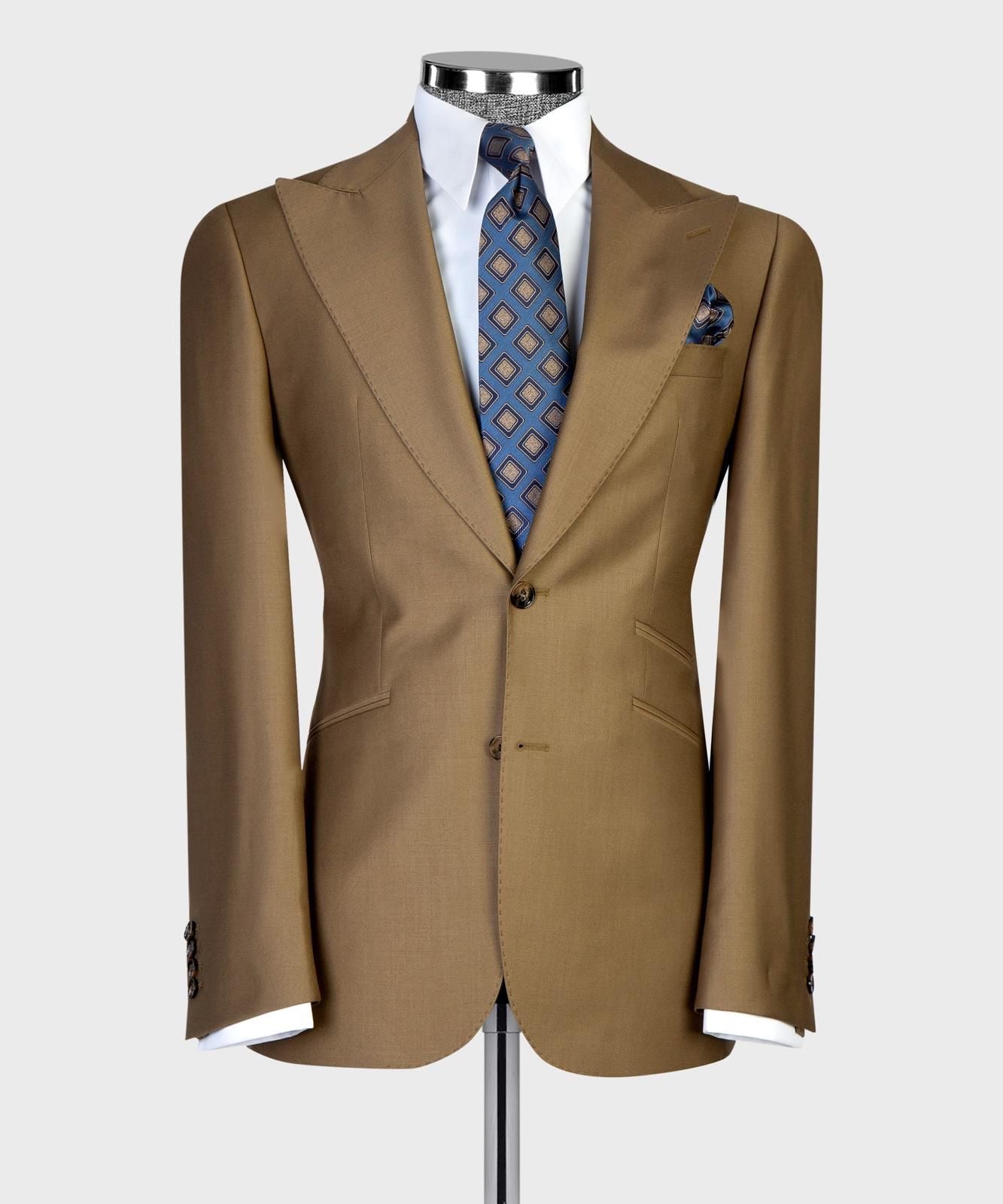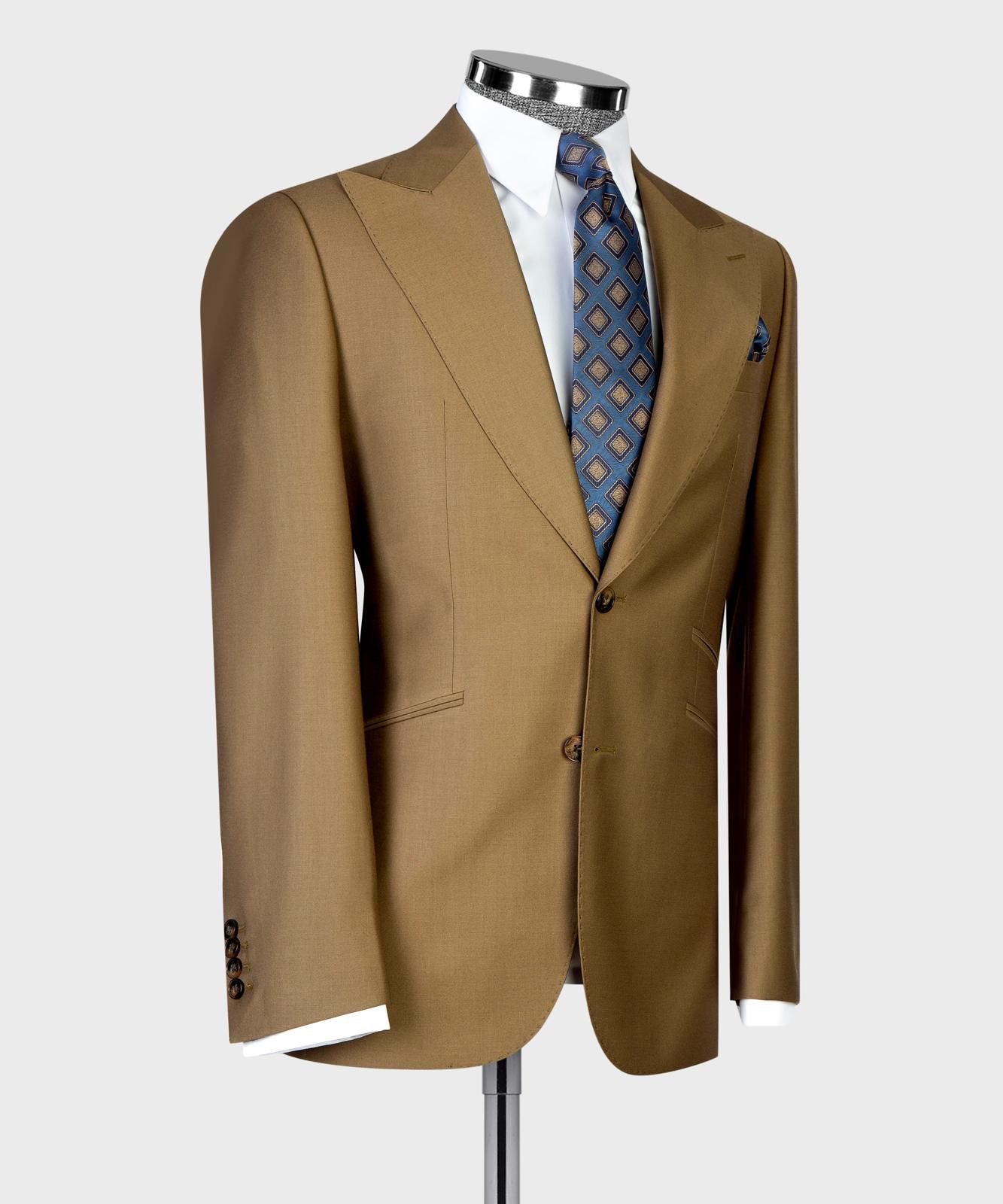 - Wide peak lapels